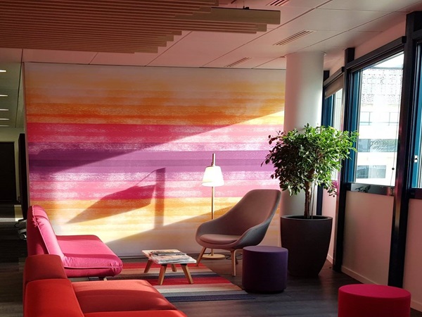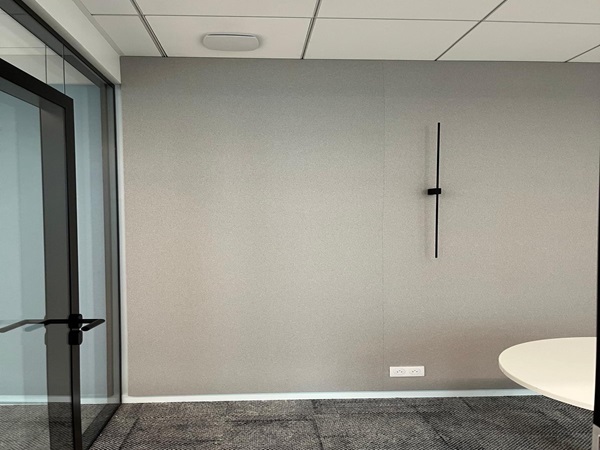 L’habillage des murs avec ces toiles textile et mousse acoustique Termobond PET recyclable permet de transformer les murs en des surfaces absorbantes, de manière rapide et sans travaux. Unie ou imprimée, la toile décore une pièce et lui donne apporte de la chaleur.